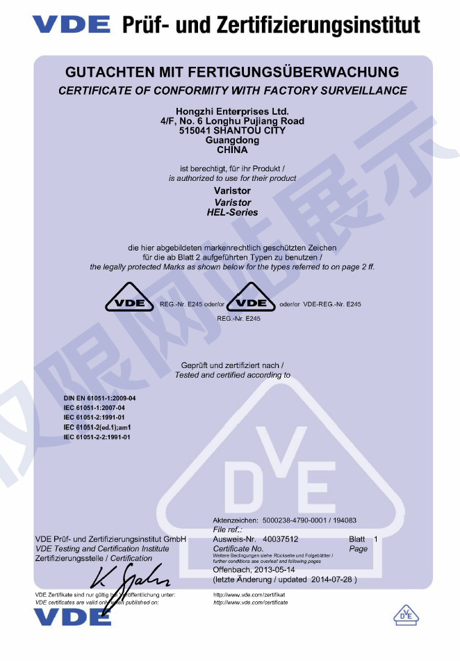 廣東鴻志電子科技有限公司成立于1993年,位于美麗的海濱城市汕頭,現(xiàn)已發(fā)展成為元器件制造集團(tuán)企業(yè),生產(chǎn)壓敏電阻、NTC熱敏電阻、陶瓷電容和金屬化薄膜電容,通過了ISO9001質(zhì)量體系認(rèn)證和ISO14001環(huán)境體系認(rèn)證,以及IATF16949汽車產(chǎn)品質(zhì)量體系認(rèn)證...